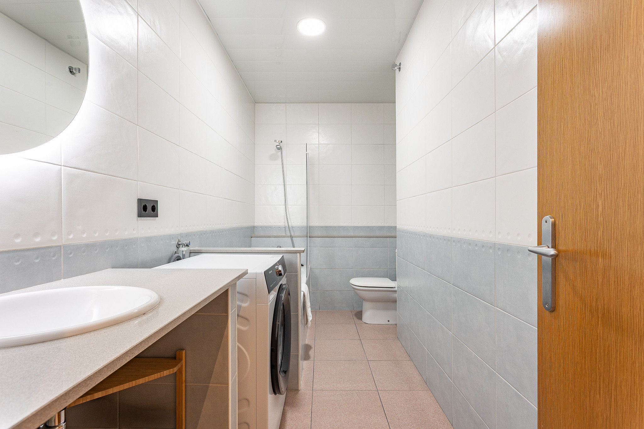 La chambre principale dispose d'un lit double et de placards spacieux. La deuxième chambre comprend 2 lits individuels. La salle de bain élégante, entièrement équipée d'une cabine de douche, est pourvue de serviettes à votre arrivée dans l'appartement.