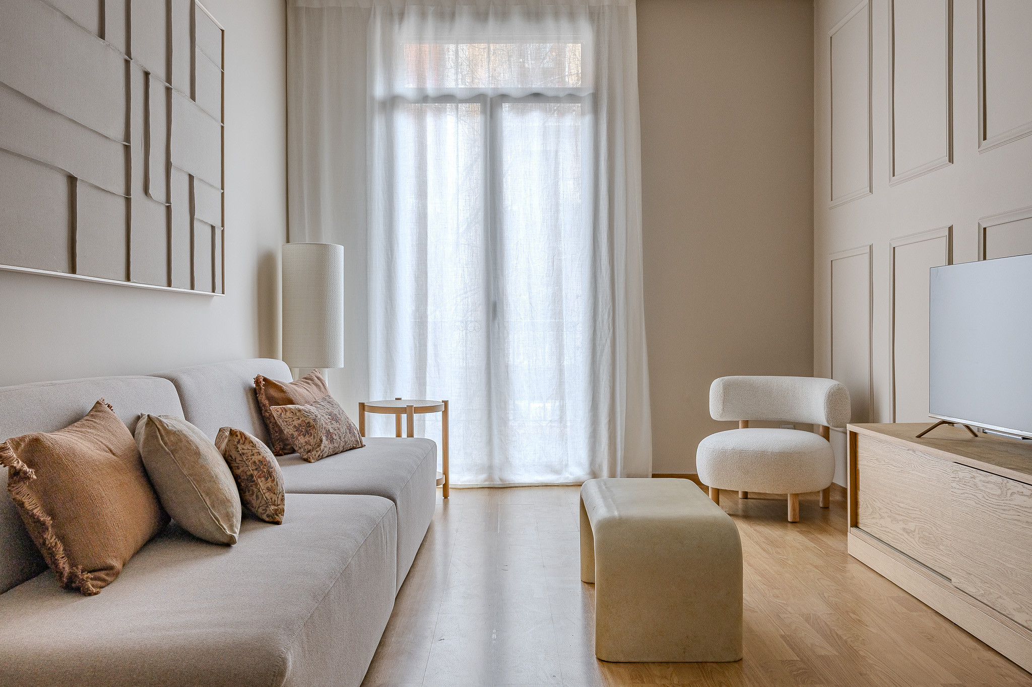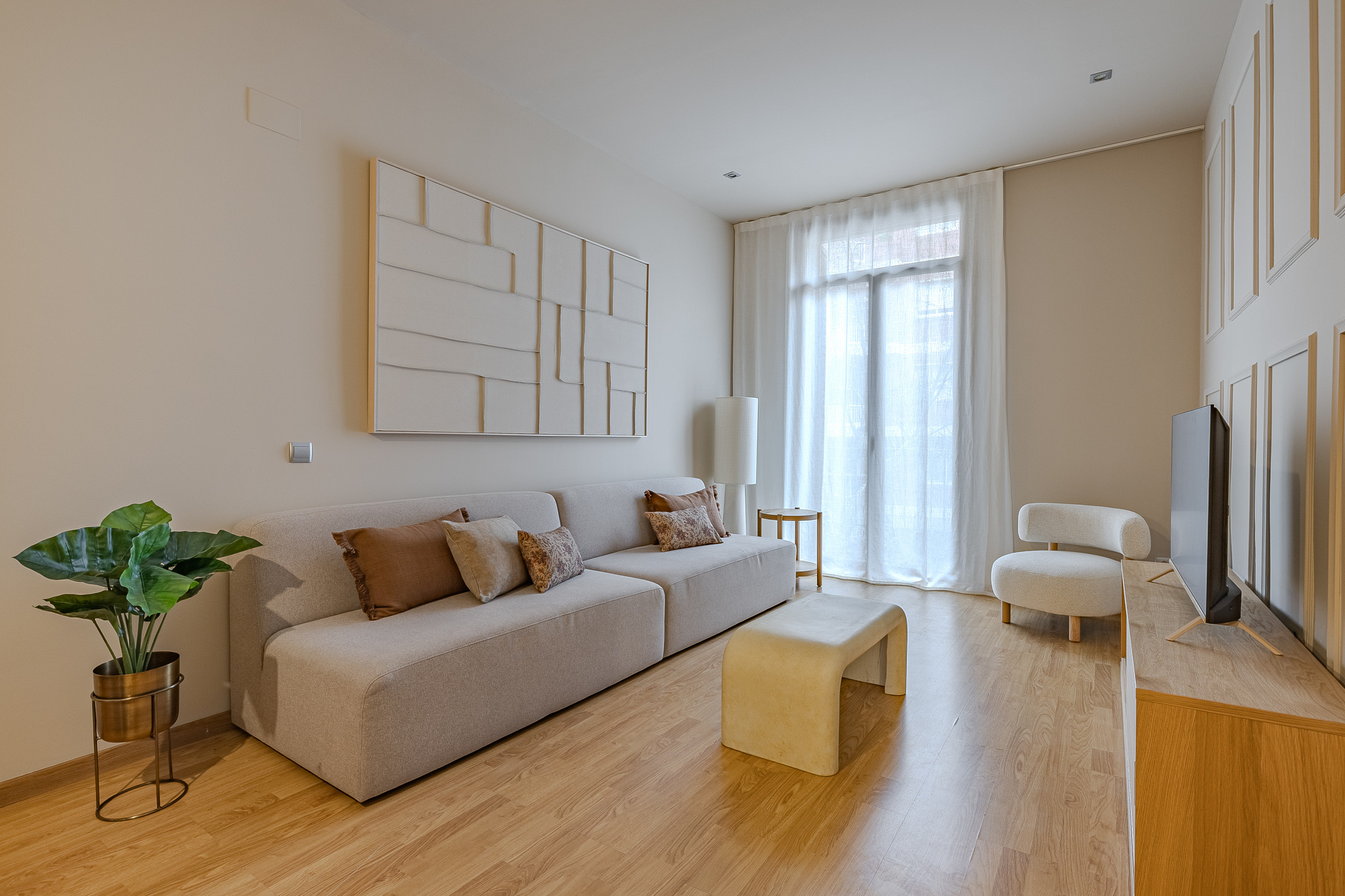 Questo appartamento è stato completamente ristrutturato in uno stile elegante e di buon gusto per combinare perfettamente comfort e design degli interni.