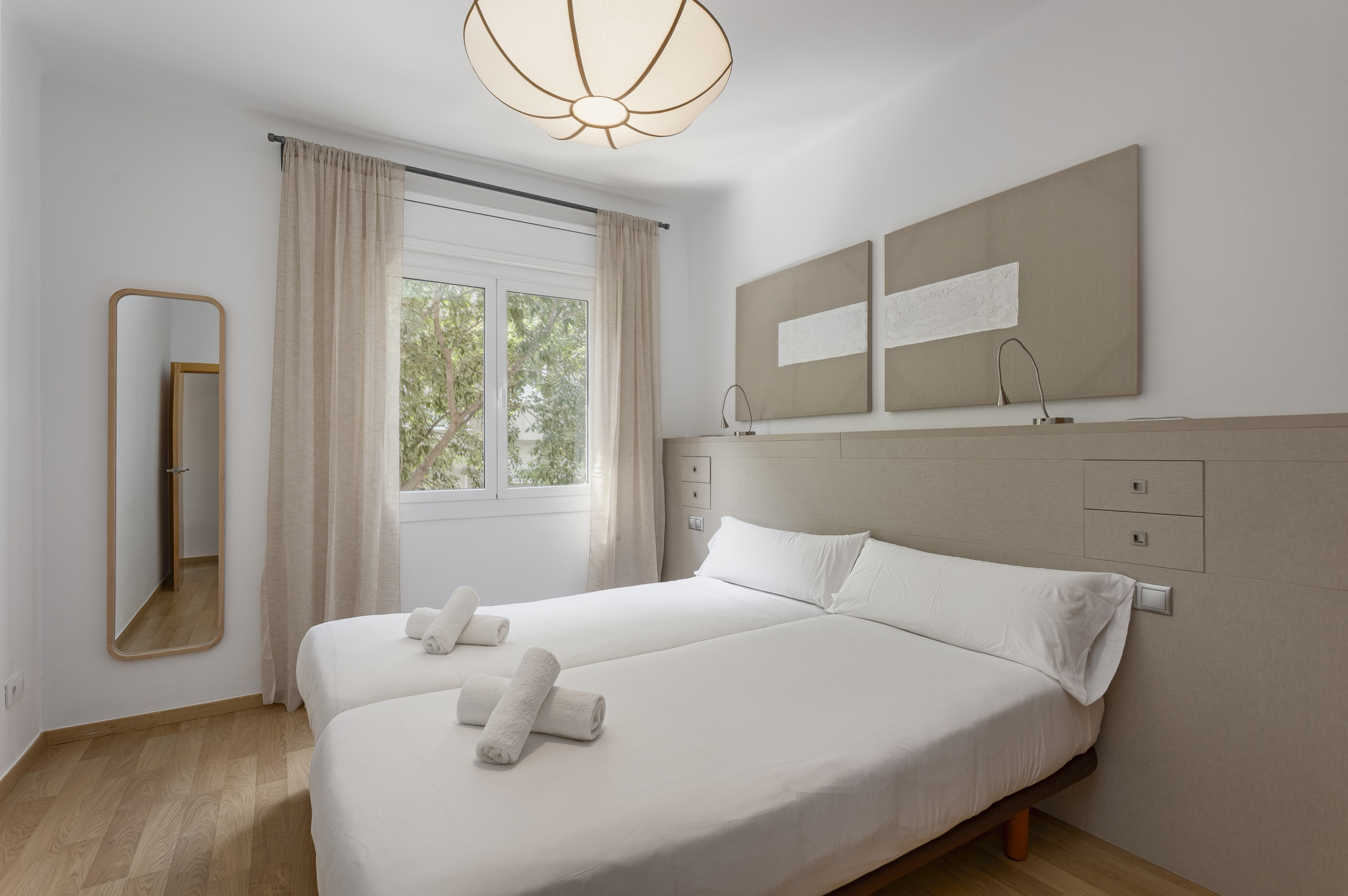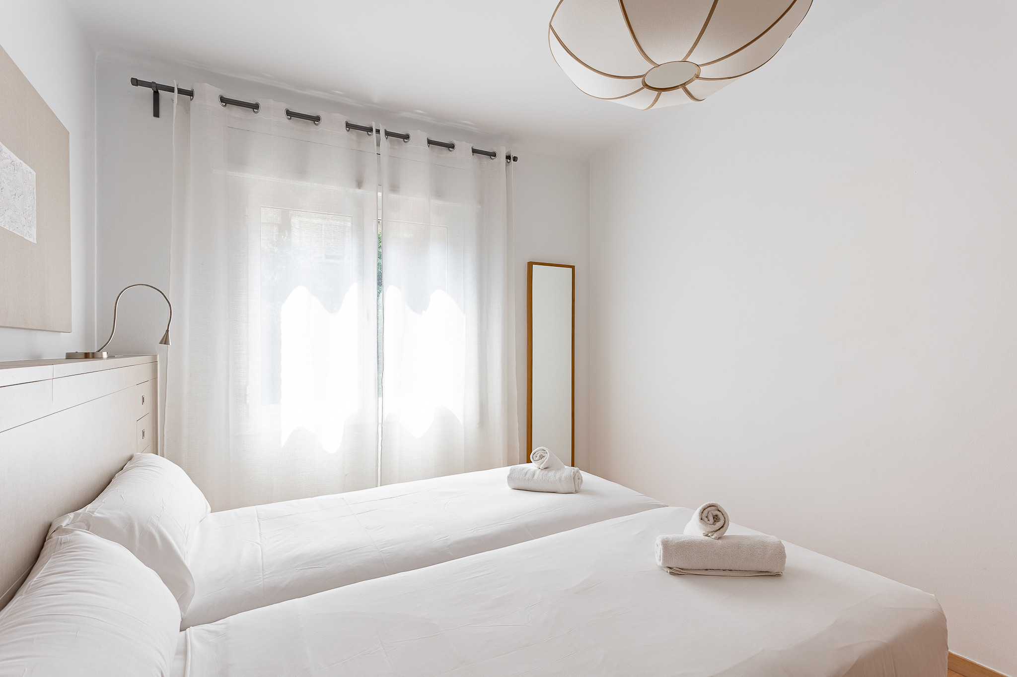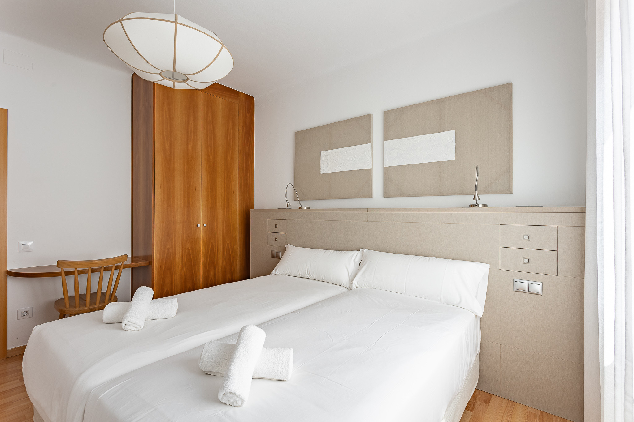 La camera da letto principale dispone di un letto matrimoniale e di ampi armadi. La seconda camera da letto ha un letto singolo. L'elegante bagno, completo di cabina doccia, è dotato di asciugamani da utilizzare al momento del vostro arrivo nell'appartamento.