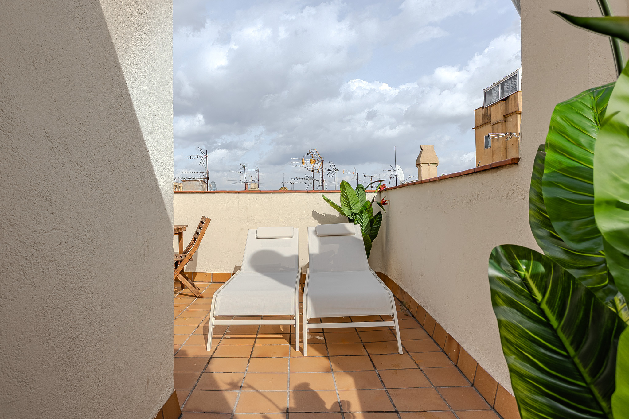 Appartamento attico con terrazza privata ristrutturato nell'agosto 2016, con una camera da letto e un bagno, situato nel pieno centro della città, a pochi metri dalle Ramblas e dal famoso Portal del Ángel, accanto alla chiesa di Santa Anna.