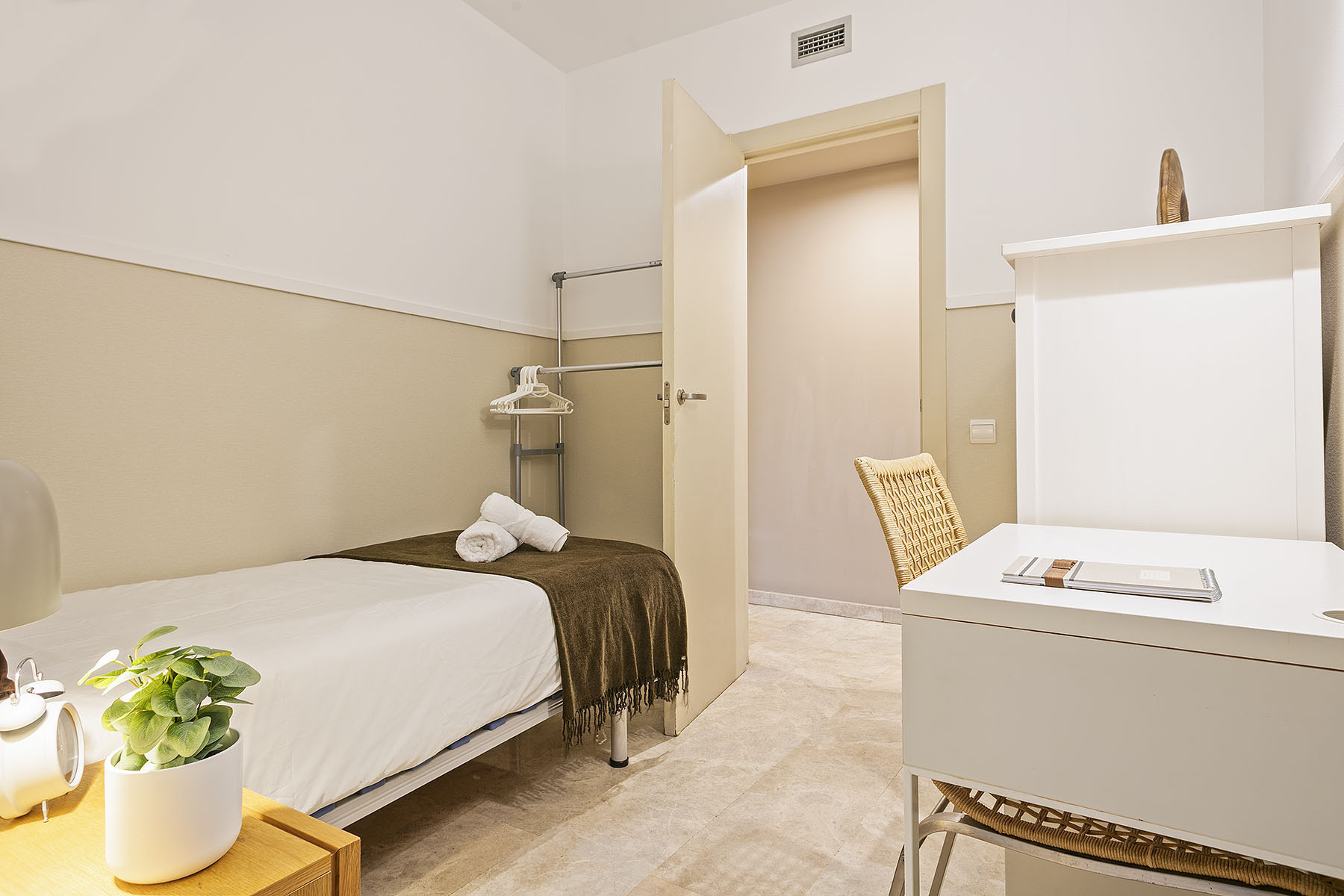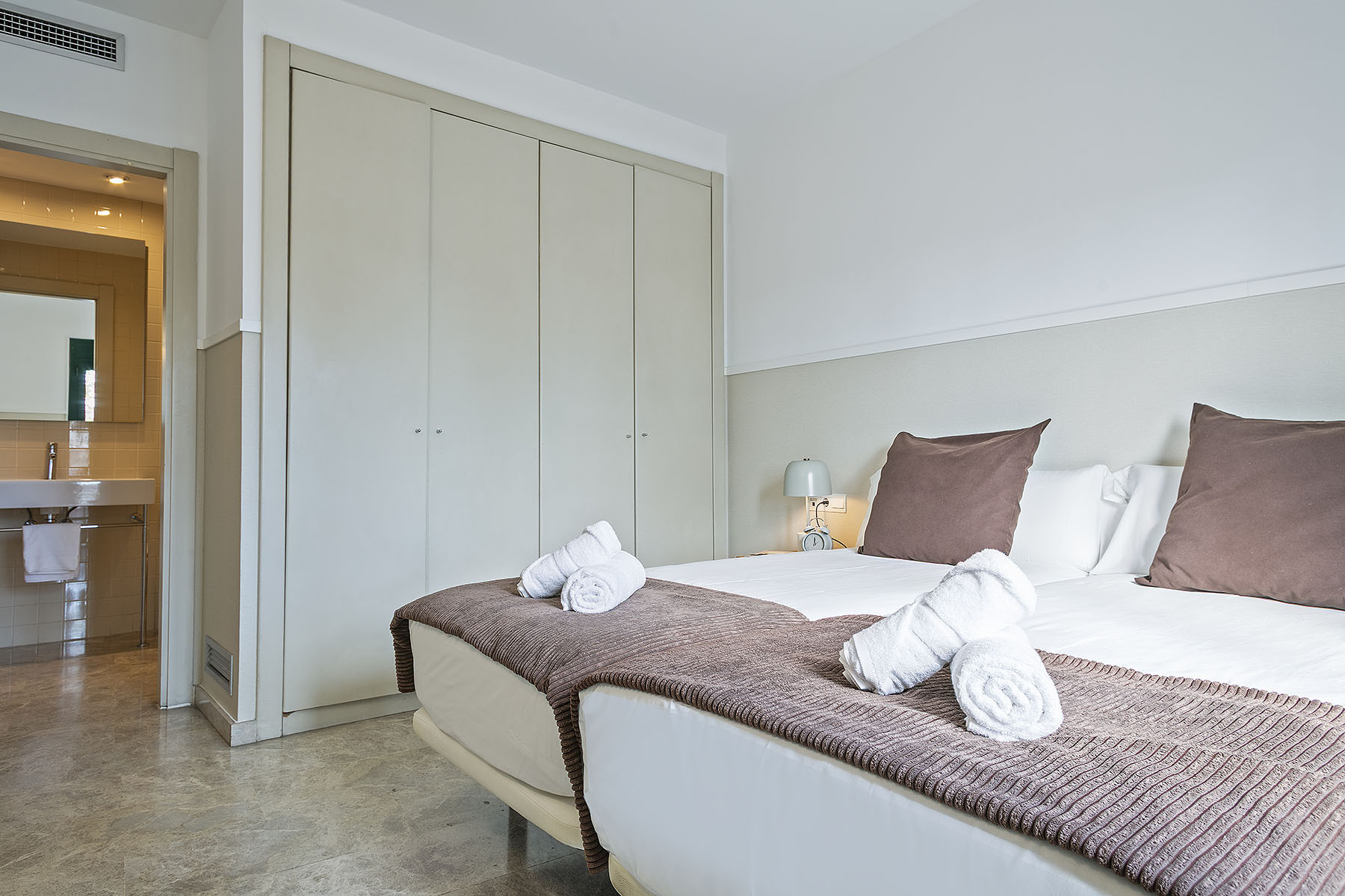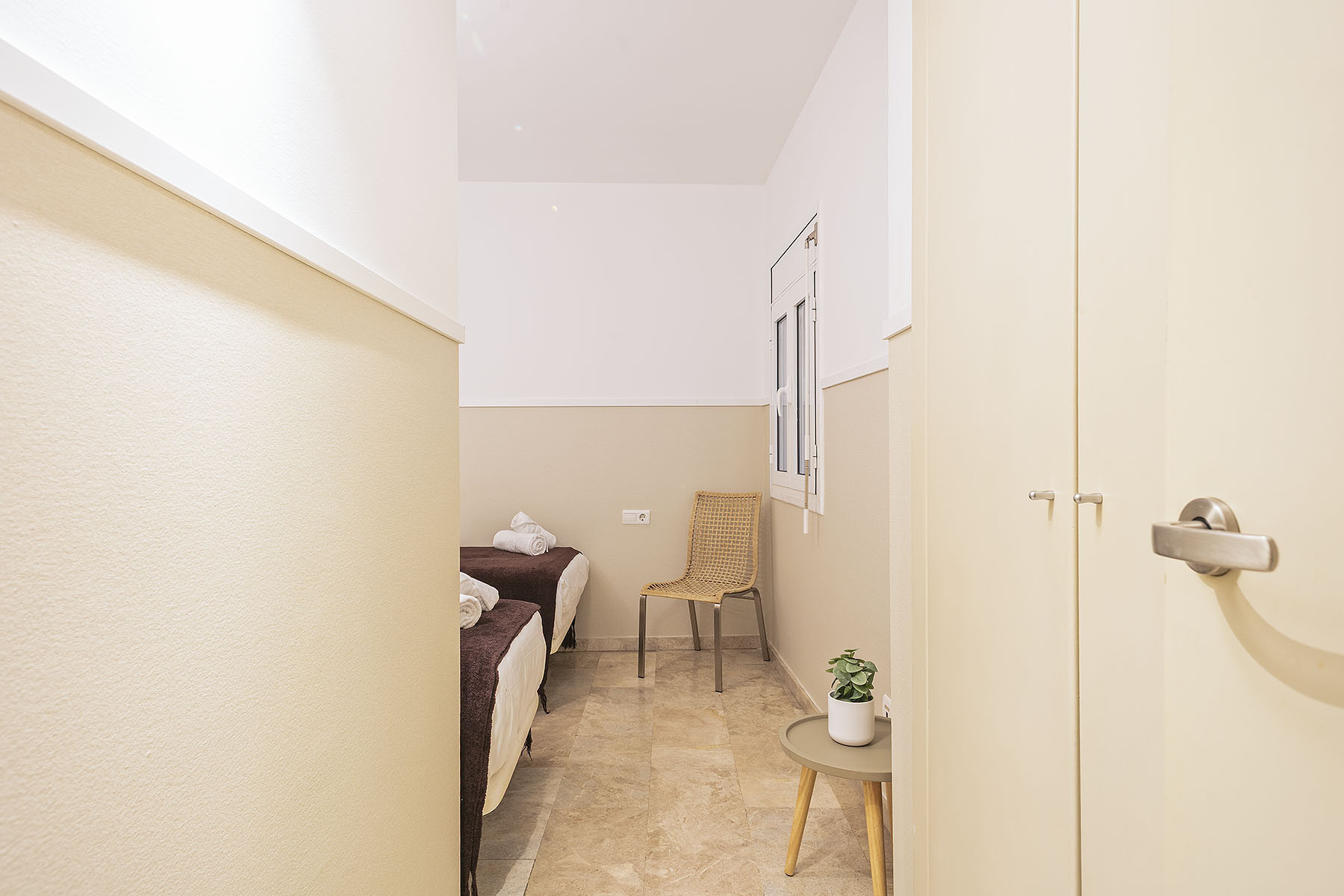 O apartamento consiste numa quarto duplo com varanda e casa de banho privativa, um quarto individual com um pequeno pátio privado, e dois quartos duplos que dispõem de duas camas individuais que podem ser utilizadas para uma ou duas pessoas.