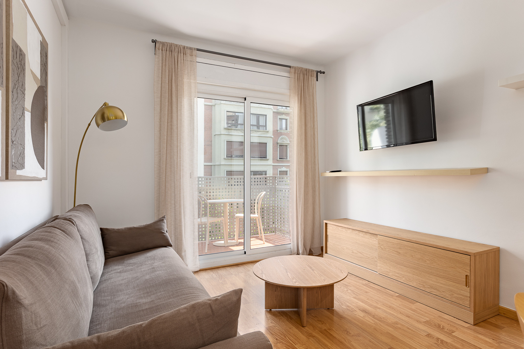 Desfruta das comodidades modernas como ar condicionado, aquecimento por bomba de calor, WiFi e um cofre para guardar os teus objetos de valor. O apartamento também inclui ferro de passar e televisão para o teu entretenimento. Uma pequena varanda permitir-te-á desfrutar de momentos de relaxamento com vista para a cidade.
